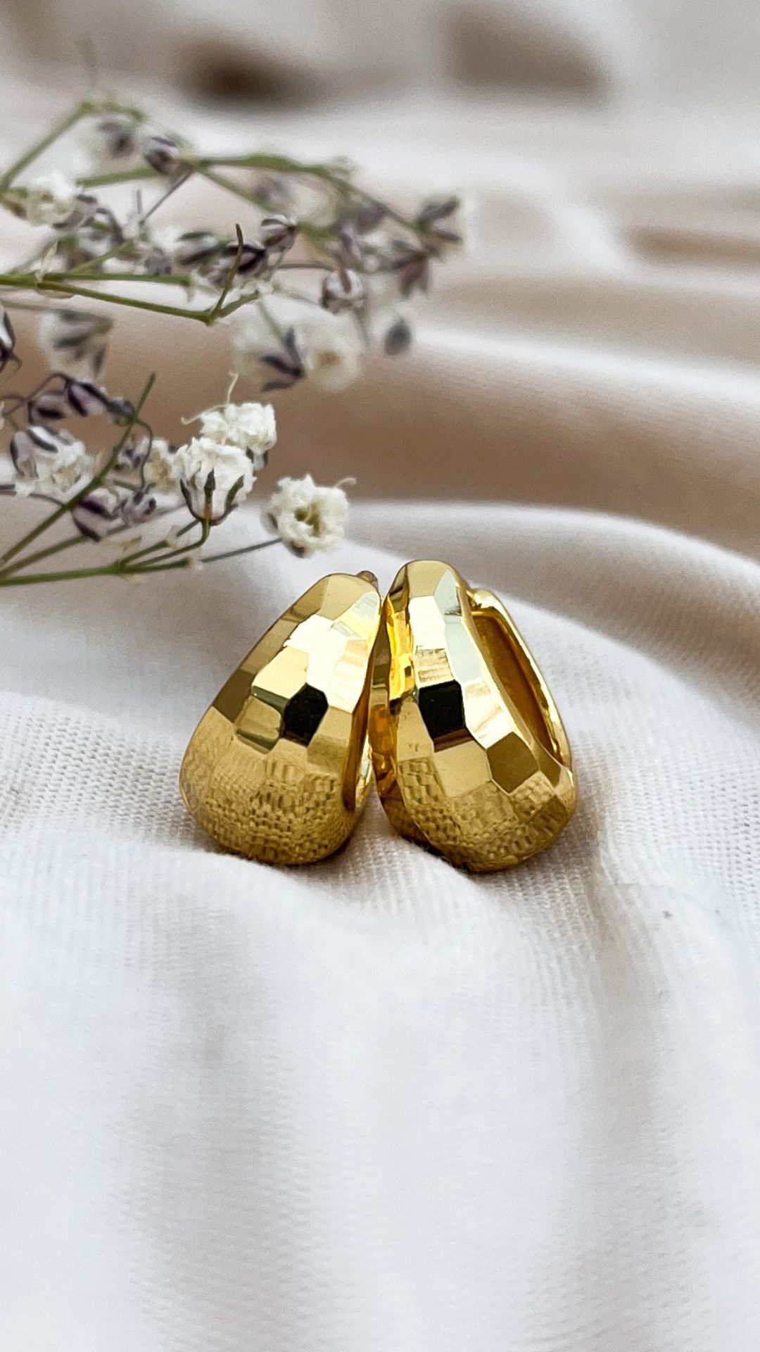 Aretes elaborados en cobre bañado en oro, con un acabado brillante que aporta elegancia y estilo. Diseñados para complementar distintos looks, desde opciones casuales hasta outfits más sofisticados, son una elección versátil para el uso diario o para ocasiones especiales. Su diseño equilibrado permite lucirlos cómodamente, convirtiéndolos en un accesorio ideal para realzar el rostro con un toque dorado atemporal.