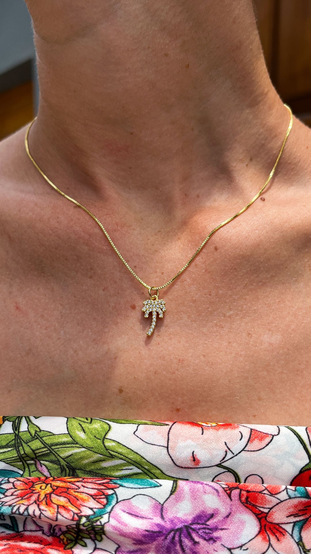 Cadena delicada con dije de palmera, elaborados en cobre bañado en oro. Su diseño sutil y simbólico aporta un toque fresco y femenino, ideal para quienes buscan un accesorio con personalidad sin perder elegancia. Perfecta para usar sola o combinada con otras cadenas, esta pieza se adapta tanto a looks casuales como a outfits más sofisticados, convirtiéndose en un detalle especial para el día a día.