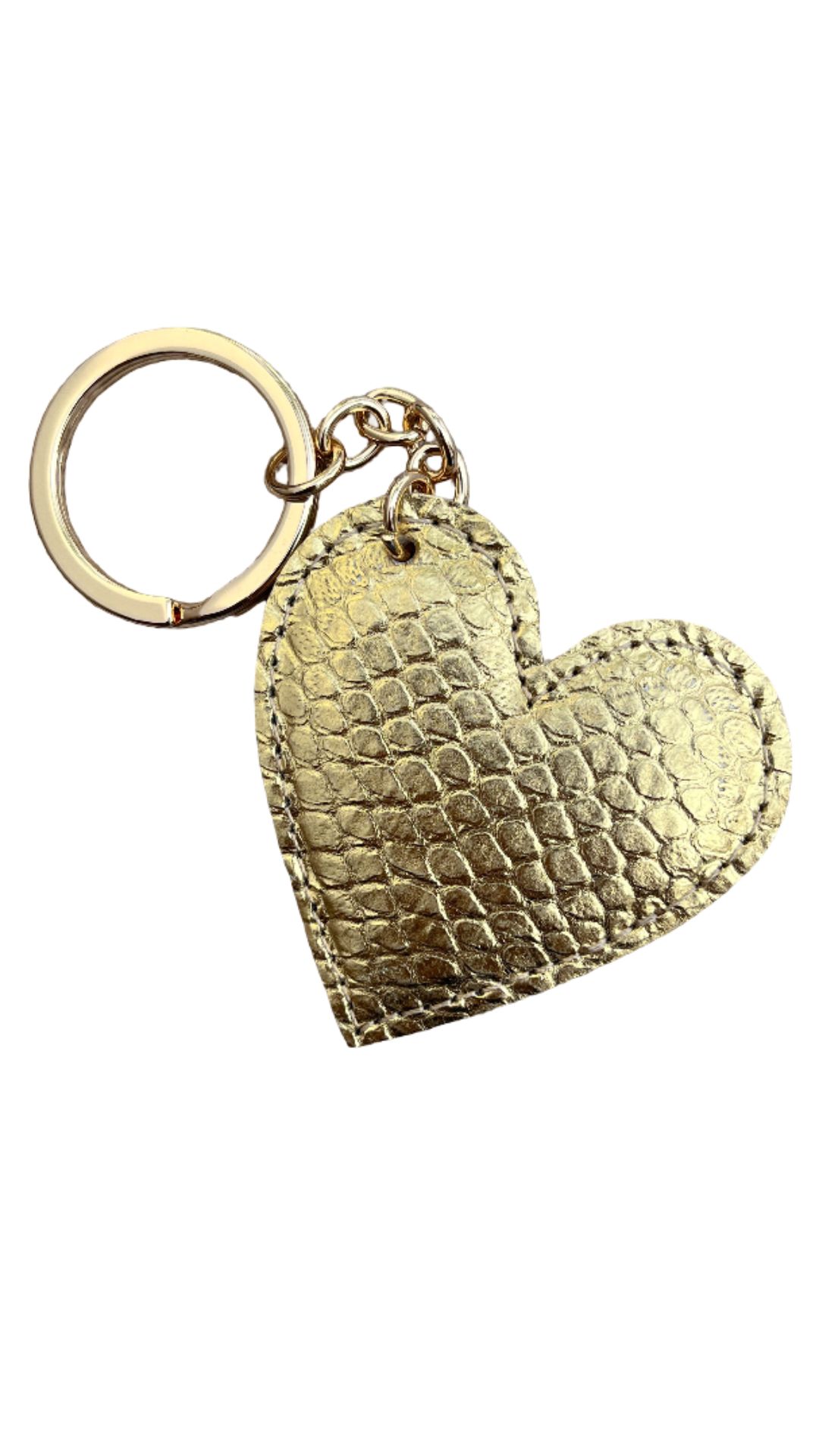 Envíos a todo el PerúLlavero de cuero en forma de corazón, color dorado.